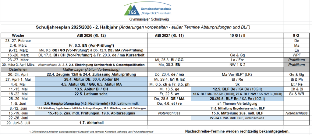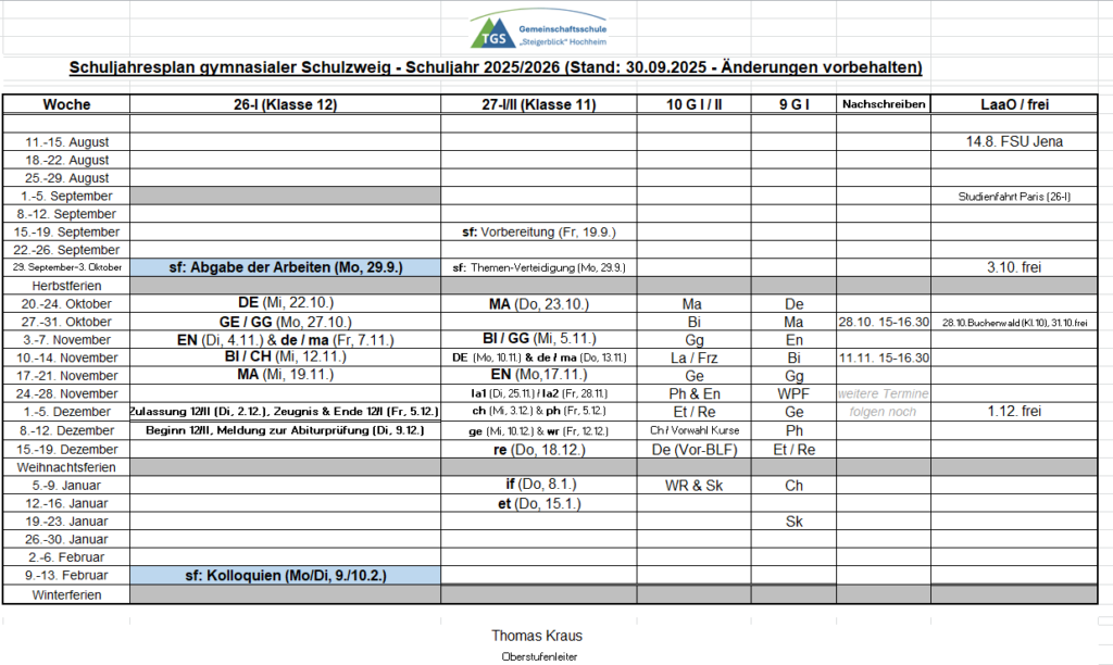 Schuljahresplan (Klassen 9 bis 12)