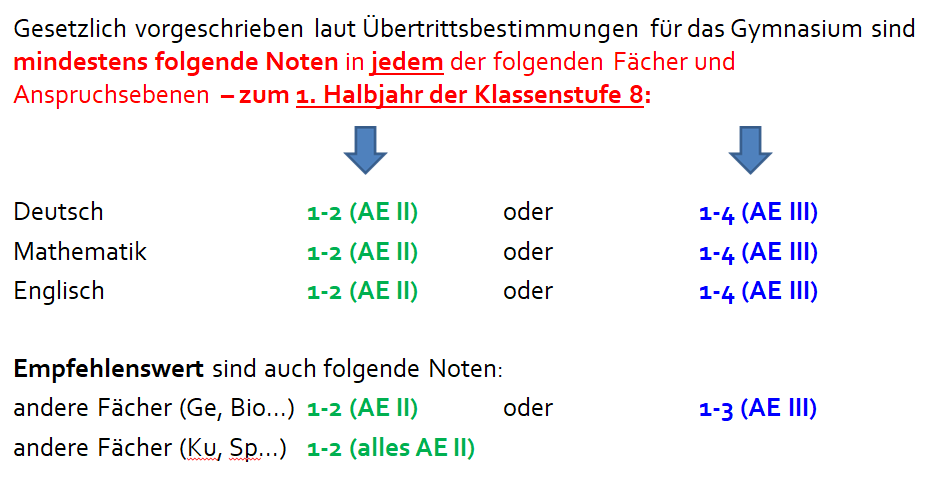 Zugangsvoraussetzungen für den gymnasialen Bildungsgang: