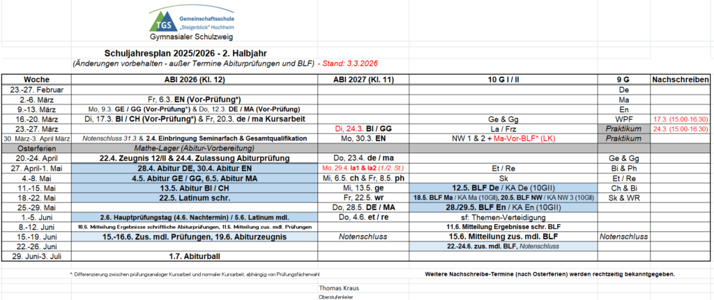 Schuljahresplan (Klassen 9 bis 12)